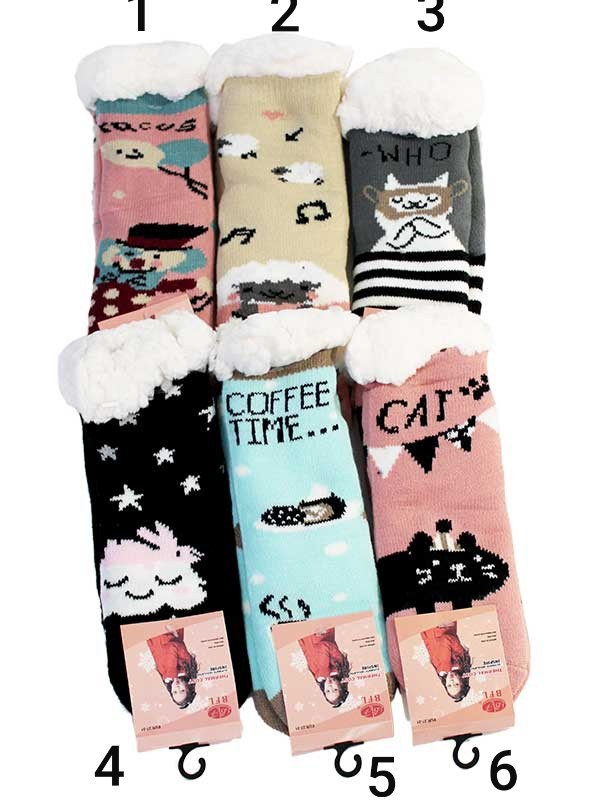 Tople in zabavne zimske nogavice so izjemno darilo za vsakega za rojstni dan, praznik ali kakšno drugo priložnost. Perfektni za doma: udobni, mehki, lahki in topli. V celoti z volneno podlogo in podplati z nedrsljivimi bulicami.