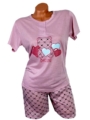 Poletna bombažna pižama izredno prijetna in ležerna. Kratek rokav in kratke hlače, v pasu je elastika. Na voljo v roza, modri in sivi barvi. Dolžina zgornjega dela ca 60 cm. Dolžina zunanje hlačnice ca 40 cm, notranje ca 12 cm.